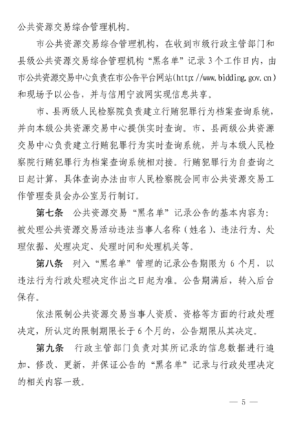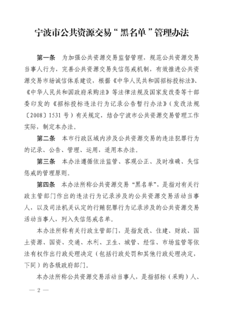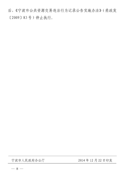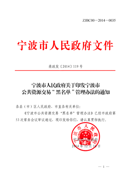 寧波市人民政府關(guān)于印發(fā)寧波市公共資源交易“黑名單”管理辦公的通知