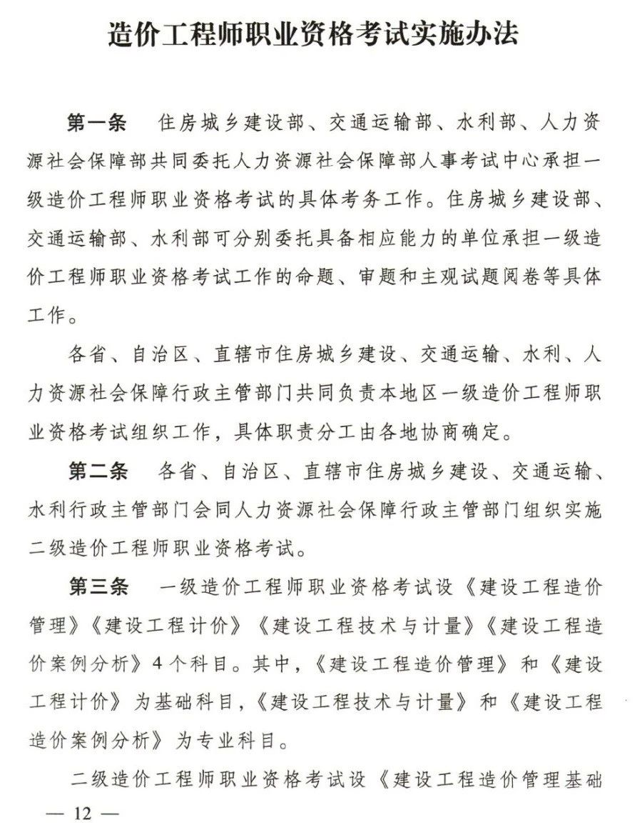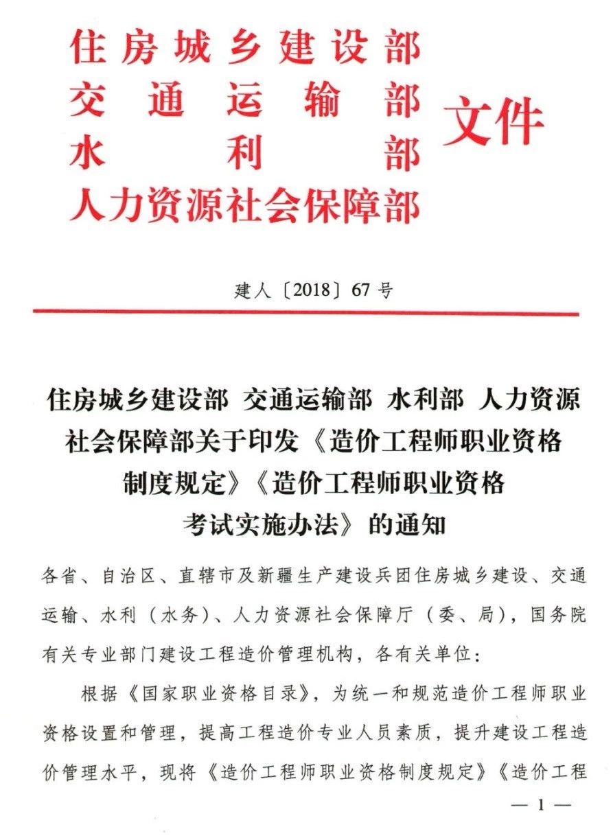 四部委正式印發(fā)《造價(jià)工程師職業(yè)資格制度規(guī)定》《考試實(shí)施辦法》